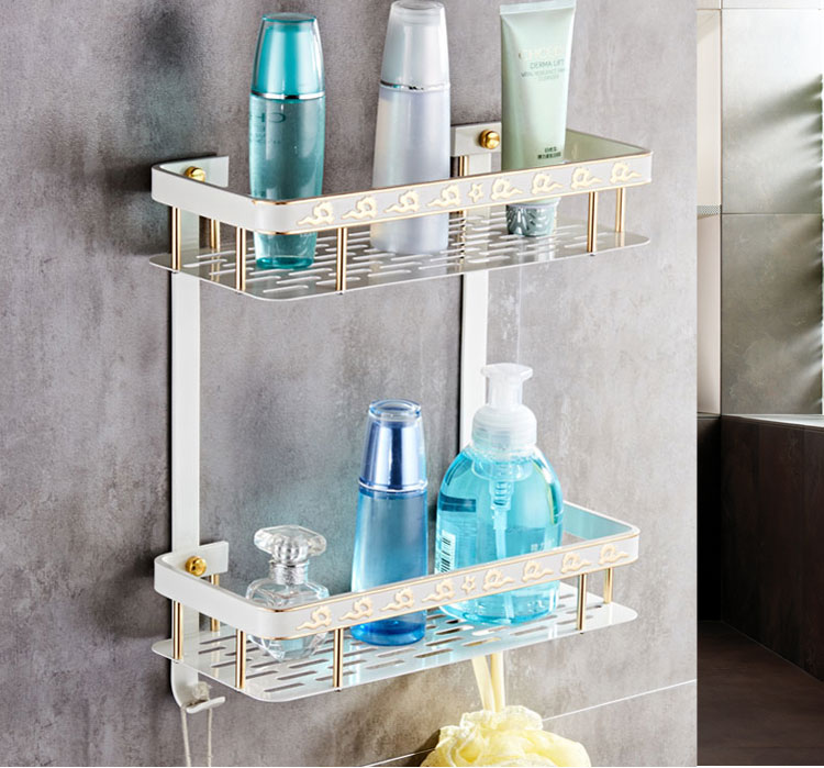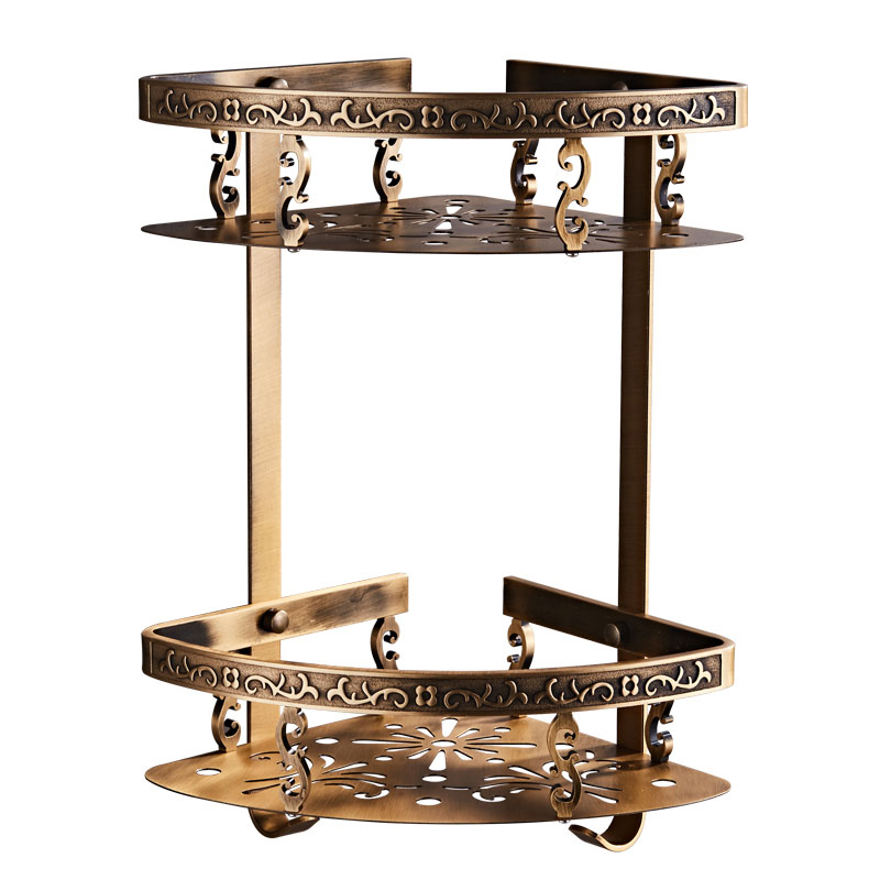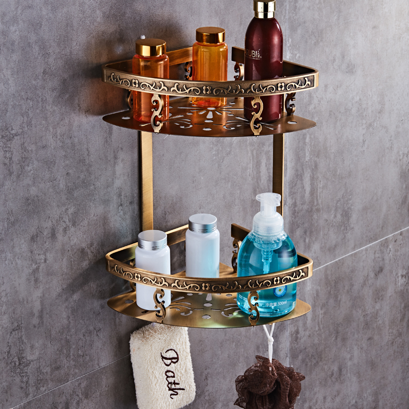 European antique powder room triangle basket corner rack Space aluminum white bathroom shelf Black storage shelf Wall hanging