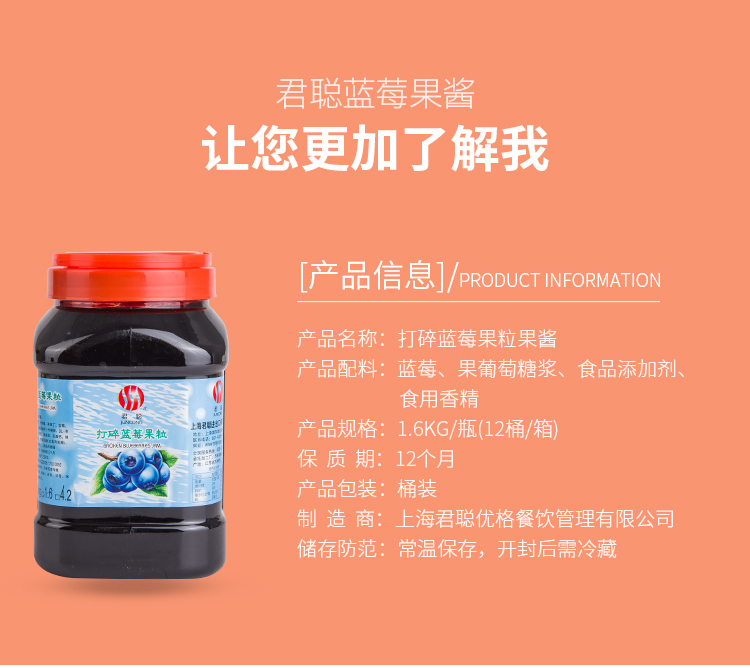 Jun Cong to shatter blueberry Juno Cong jam Juno Satoshi blueberry sauce 1 6kg