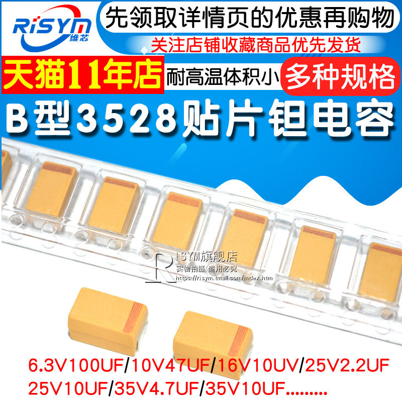 Type B 3528 SMD tantalum capacitor 25v 16v 10v 35 100u 10uf 106 3 3 4 7 22 1