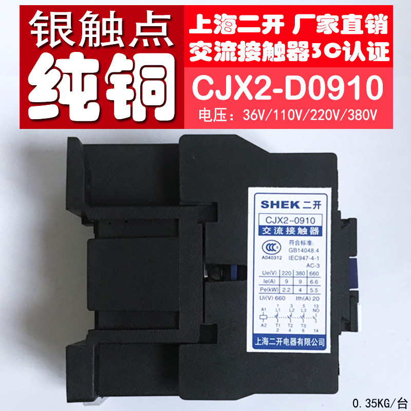 Shanghai 2 open CJX2-0910 AC contactor CJX2-D0910 silver dot LC1D9A380 220110 V