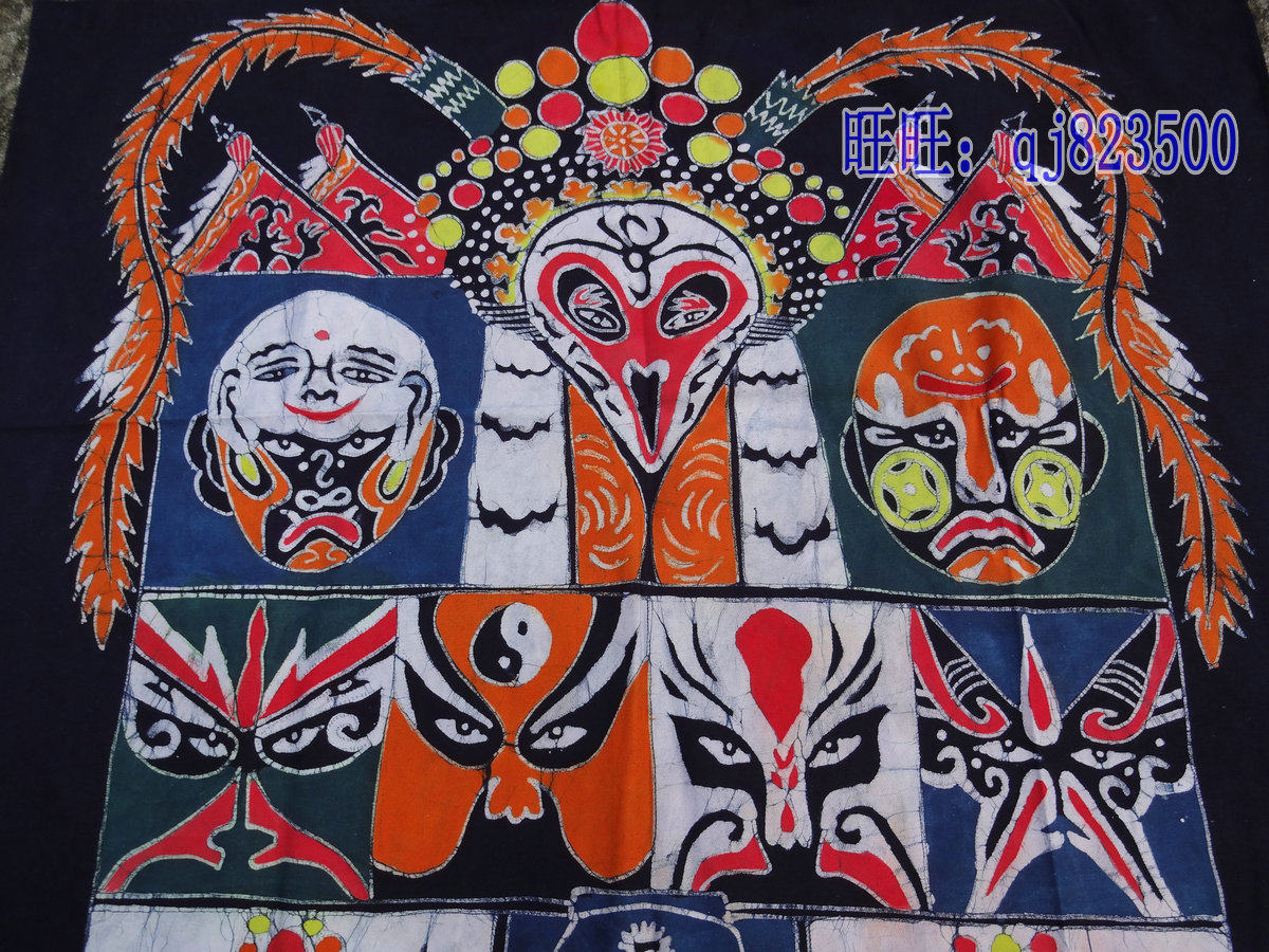 Batik curtain Miao Batik Anshun Batik painting Decorative wall-hanging tablecloth Peking Opera face mask handicrafts