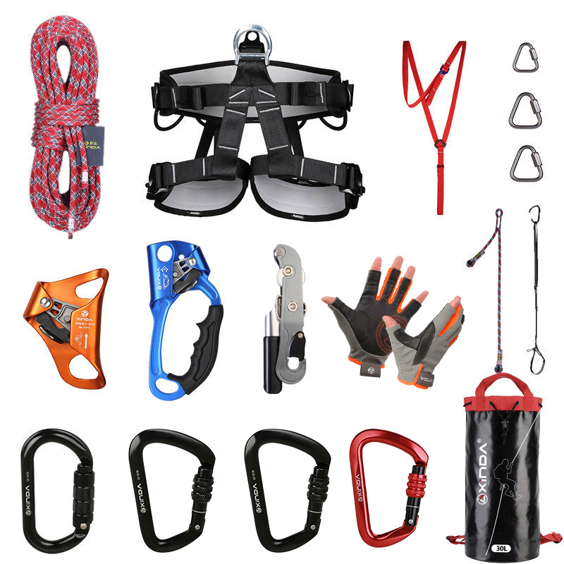 Xinda Outdoor Mountaineering Adventure Climbing Rope Climbing Set High Rope RappelLing Full Safety Gear