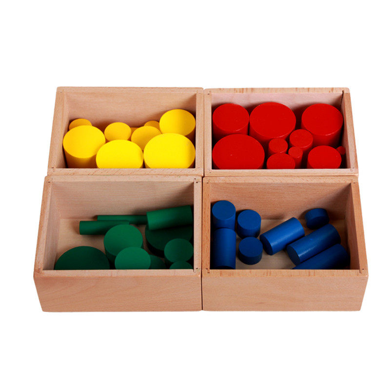 Monshi Teaching Aids Early Education Toy Sensory Education Kindergarten Early Teaching Puzzle Toy Four-color Cylindrical Color Cylinder