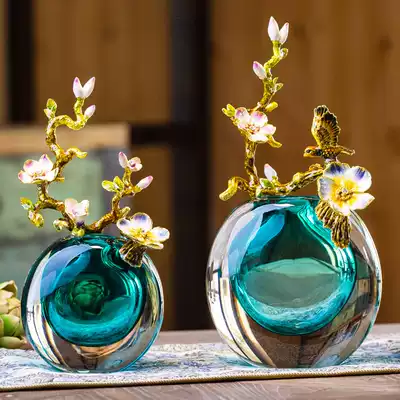 Light luxury enamel color glazed hydroponic vase living room ornaments new Chinese porch desktop TV creative Nordic flower