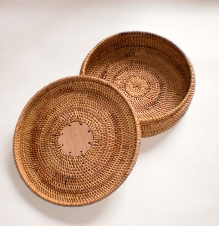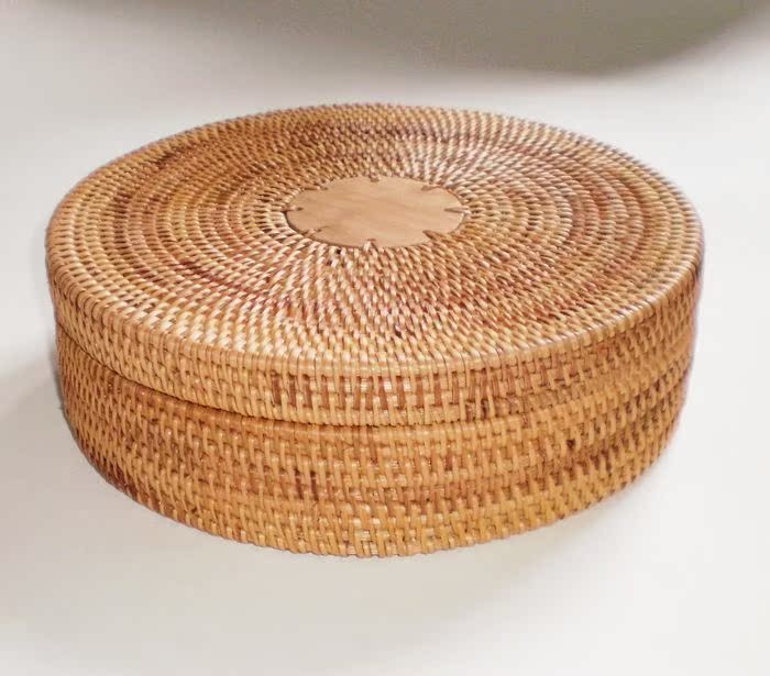 Vietnam imported handmade rattan round box storage box seven-Child double cake box Pu'er tea packaging box