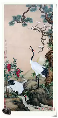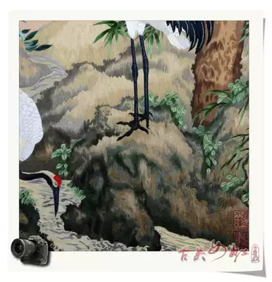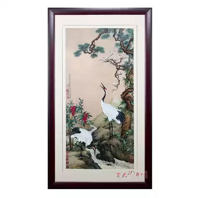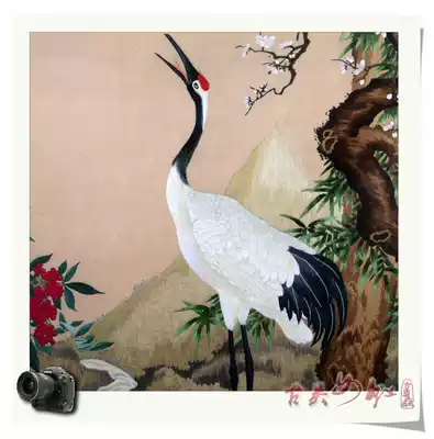 Ancient Wu female red Su embroidery finished hanging painting living room decoration painting Chinese handmade silk embroidery painting porch Songhe longevity