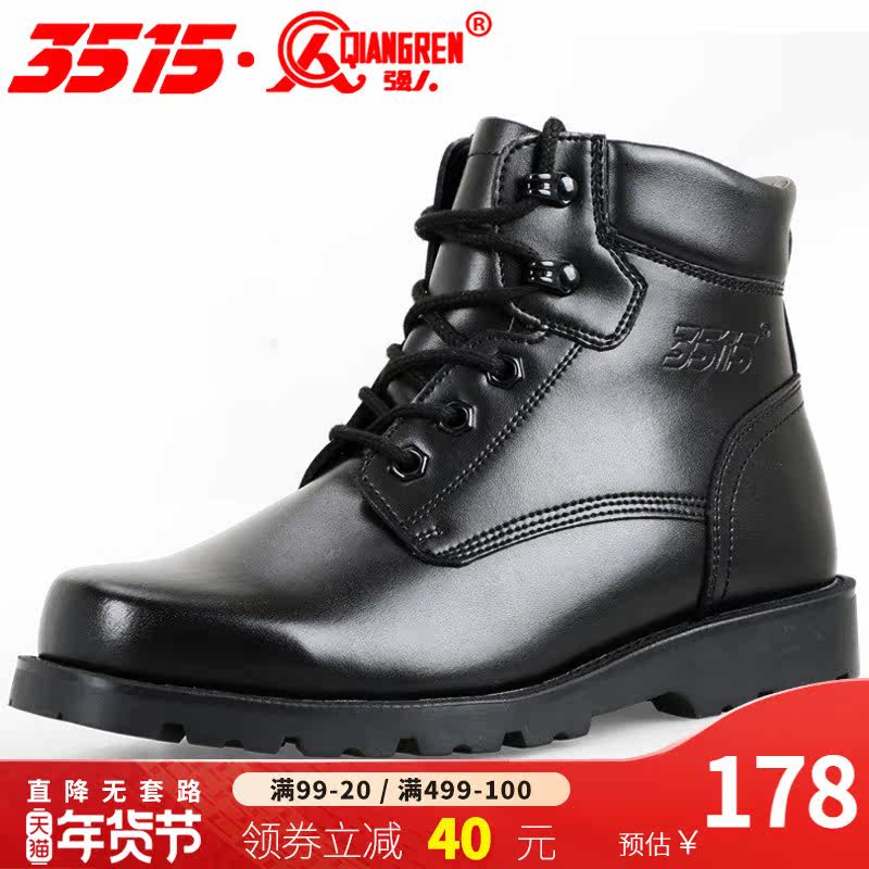 3515 Strongman Men's Winter Warm Wool Boots Training Boots Men's Outdoor Leather Lace-Up Boots Workwear Cotton Boots Snow Boots