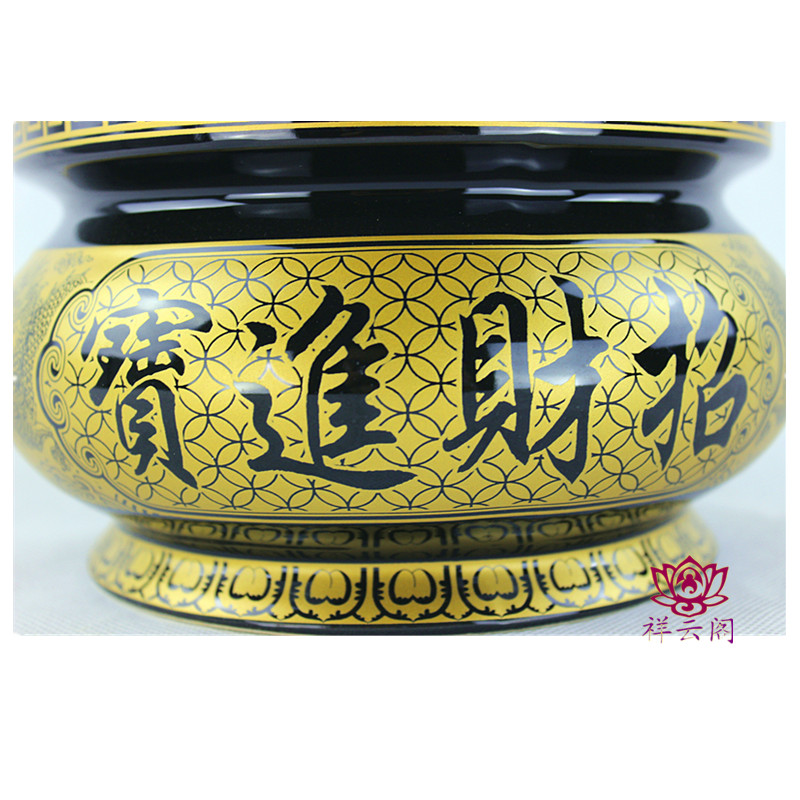Buddhist Buddha Hall Supplies Black Ceramic Incense Stove Standing Line Incense Stove to make a fortune Jin Yufull Hall 4-8 inches