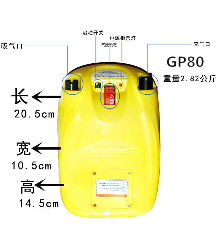 Fast smart car DC 12V rubber boat electric air pump inflatable suction pump GP80