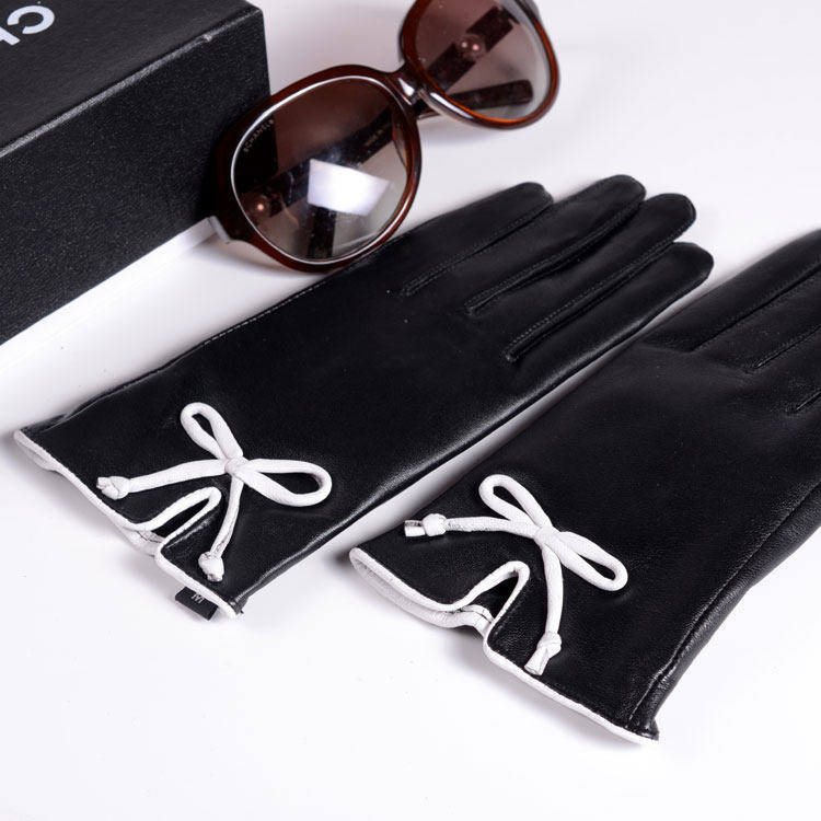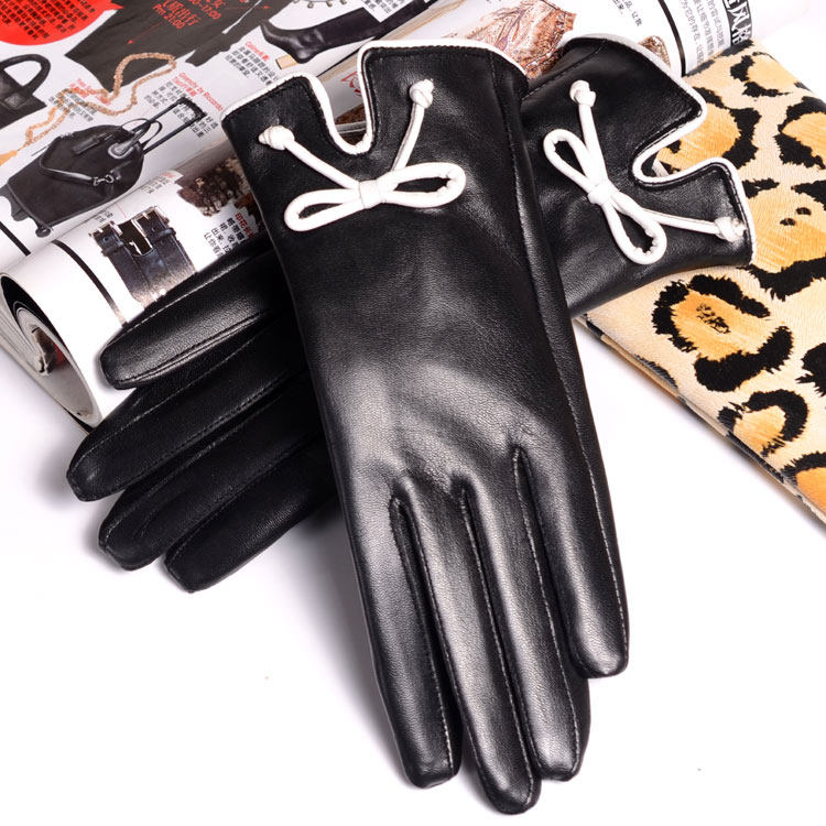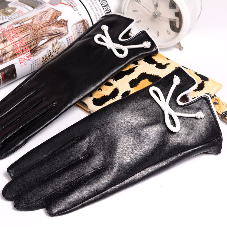 Leather gloves women's autumn and winter Korean version cute touch screen leather gloves warm riding short goat leather gloves women's winter touch