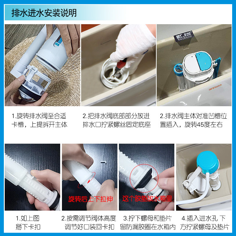 Toilet tank accessories toilet inlet valve drain valve double press full set universal old flush
