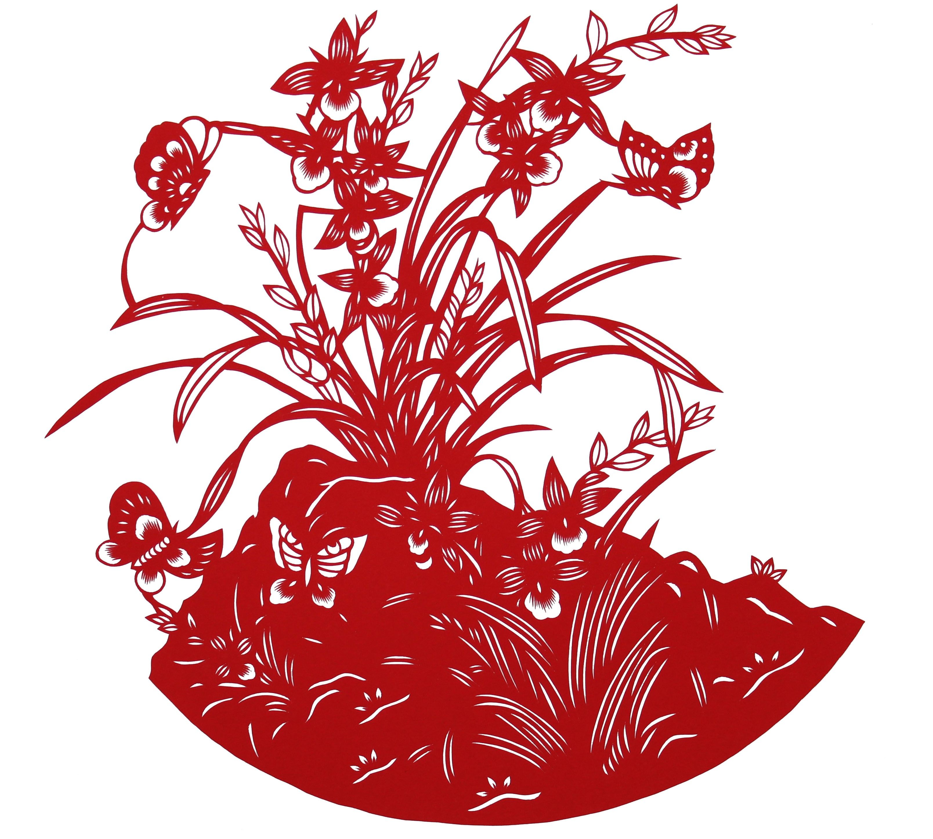Meilan bamboo lotus chrysanthemum paper-cut painting Decorative painting Characteristic culture Pure handmade auspicious Chinese style carved paper finished products sent to the outside