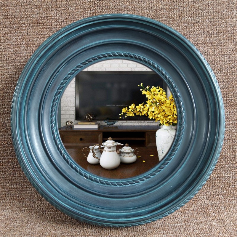 European Antique Simple Home Decoration Round Mirror Makeup Mirror Fitting Mirror Waterproof Bathroom Mirror Vanity Mirror Bathroom Mirror