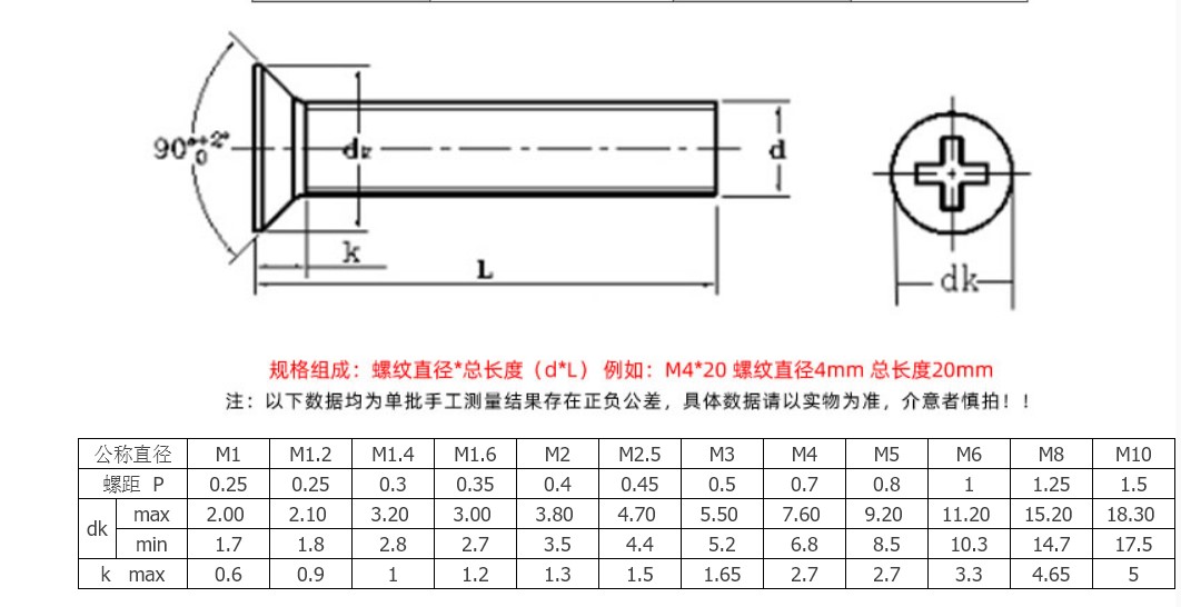 GB819 stainless steel cross countersunk head screw flat head bolt machine wire machine screw electronic screw Daquan M2M10