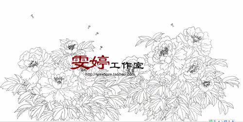 Gongbi painting line drawing background Flower and bird painting Peony butterfly Feng Shui Gongbi painting background*
