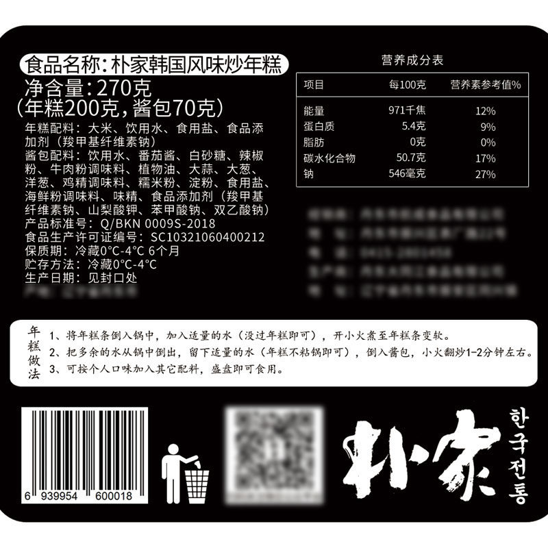 Park Family spicy fried rice cake Korean style hot sauce fried rice cake Army hot pot rice cake strips Korean Fried rice cake 270g