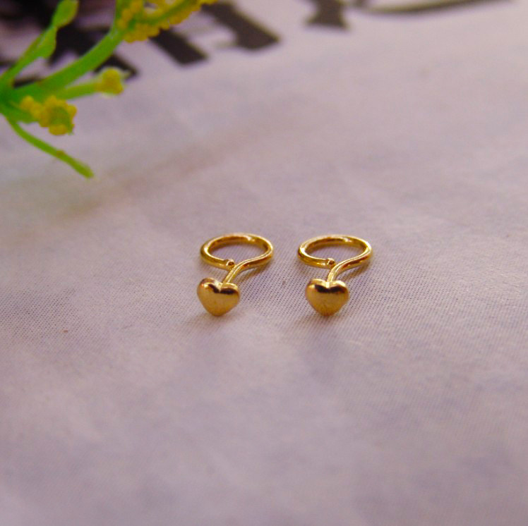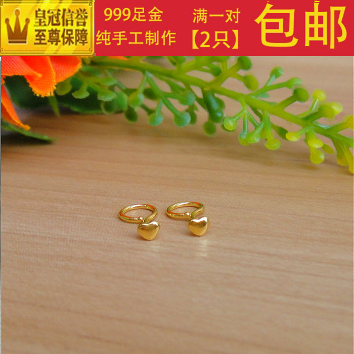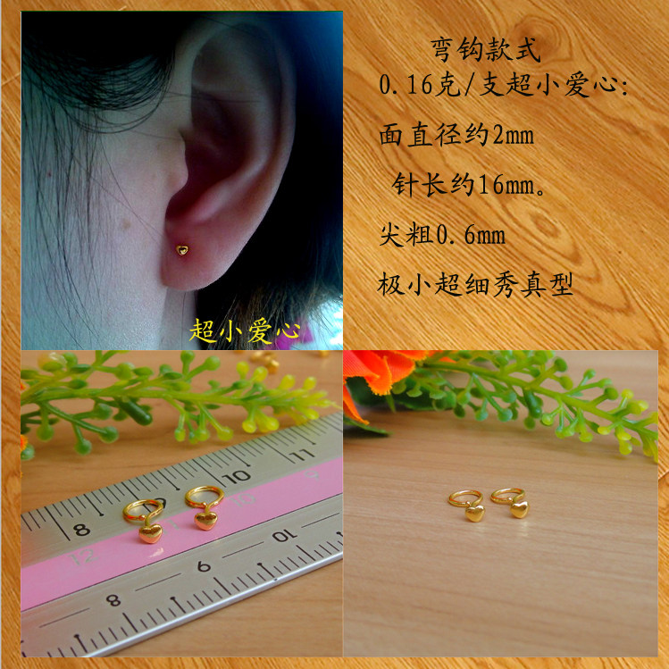 Pure gold mini super small love gold small ear needle 999 pure gold ear needle pocket female heart-shaped ear bone nail earrings