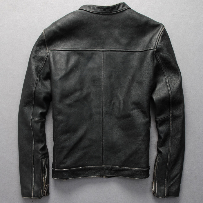Schotts imported calf leather to do old stand-up collar workout short locomotive clothes leather jacket men's leather clothing