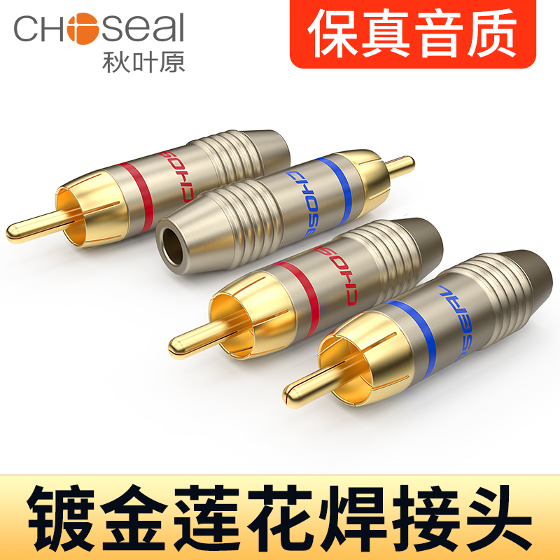 Autumn leaf original welding male head plug lotus head AV video camera coaxial audio sound line RCA terminals QS6042