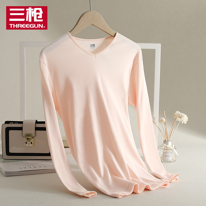 Three guns warm bottoming shirt ladies cotton underwear V-neck basic cotton top cotton sweater lining autumn clothes