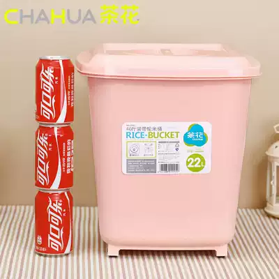 Camellia plastic rice bucket insect-proof moisture-proof rice bucket 20kg wheeled rice bowl with lid flour bucket