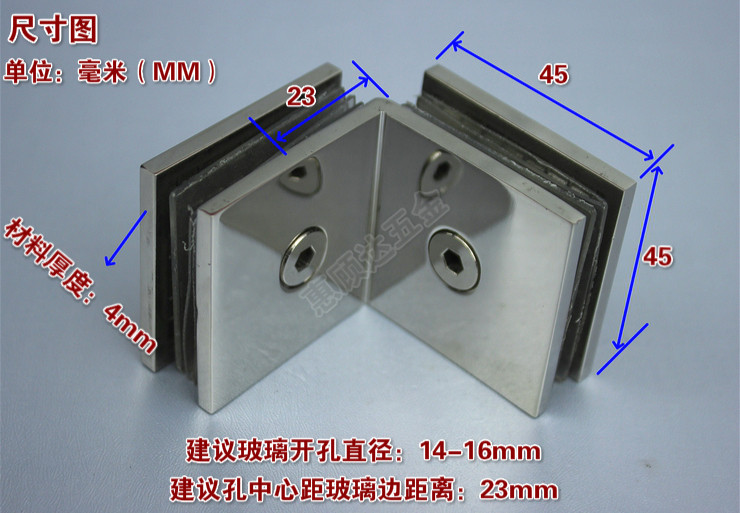 Quality warranty 10 years pure import 304 steel 4MM thick solid fine cast glass fixed clip corner code partition code 90 degrees double