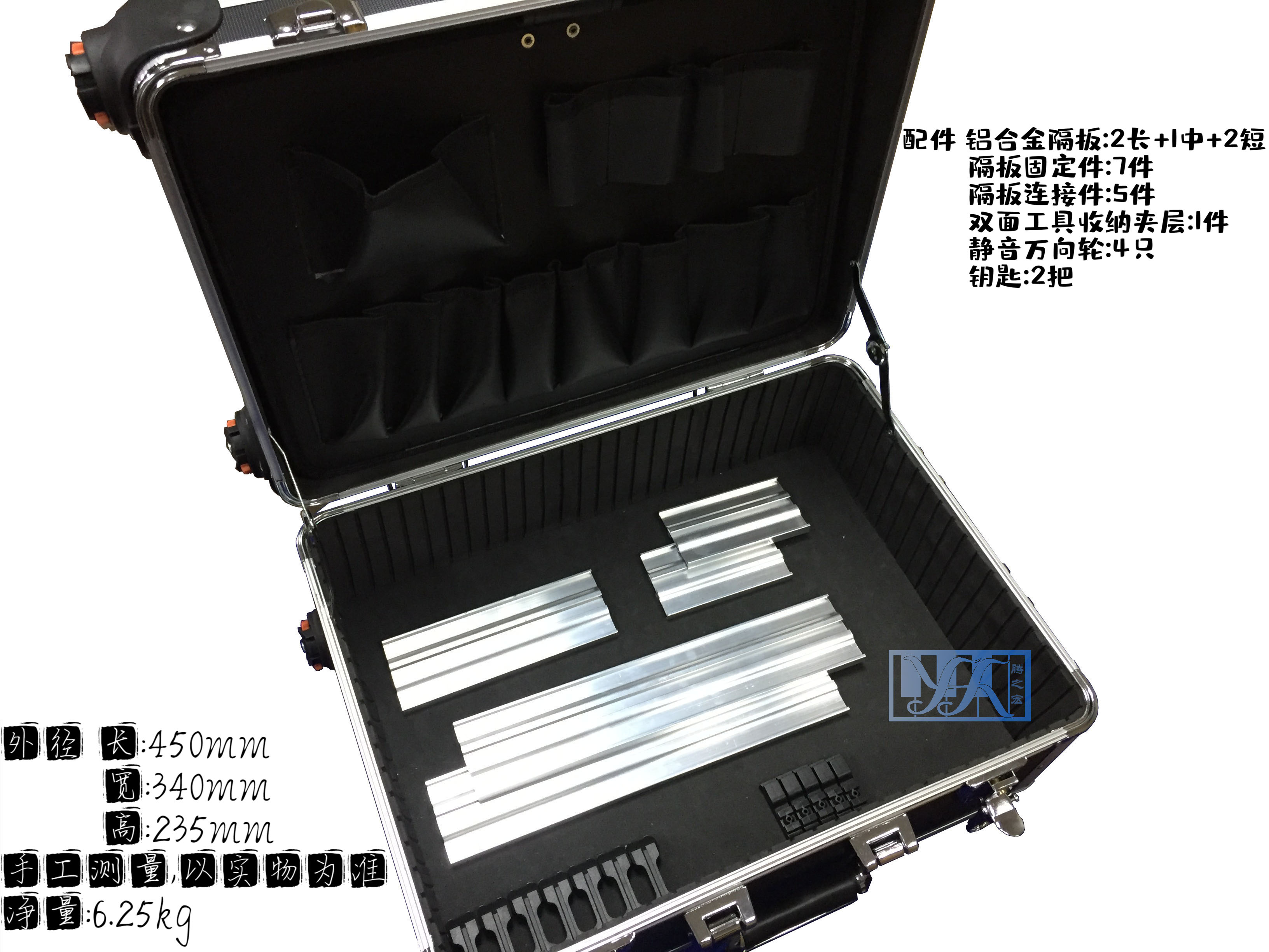 Multifunctional export toolbox Aluminum alloy box with lock Wheeled toolbox Adjustment lawyer toolbox