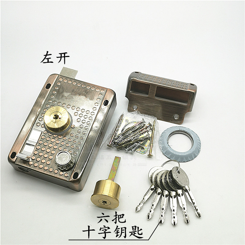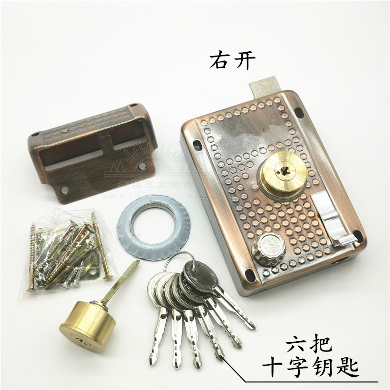 Old-fashioned exterior door lock iron door lock wood door lock anti-pry big door lock ancient copper 9219 with key burglar-proof universal door lock