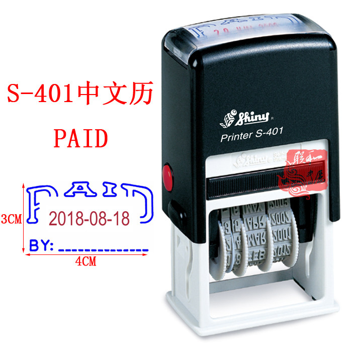Shiny S-401 S-402 S-403 Adjustable Date Back Inking Stamp Document Receipt Paid Fax