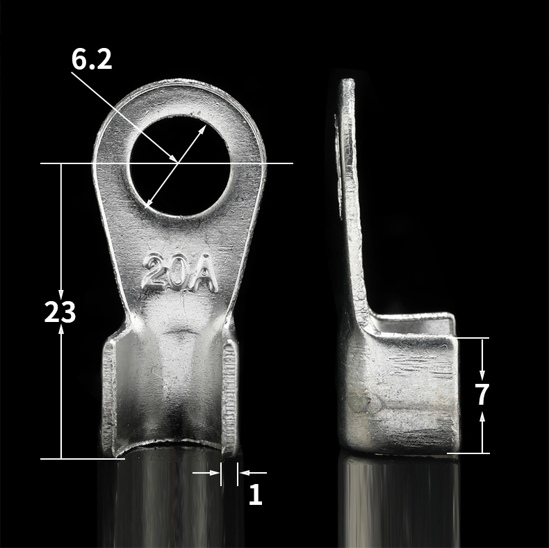 National standard tinned OT-20A opening copper wiring terminal copper wiring terminal wire ear opening nose 100 only