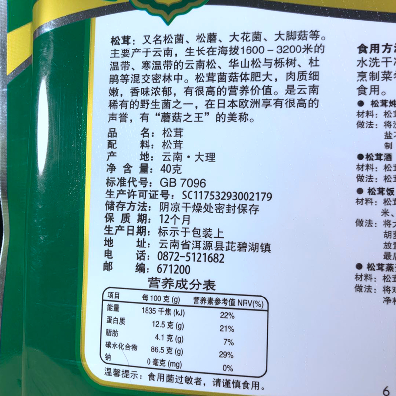 Yunnan Dali Zhonger Matsutake 40g Edible Mushroom Soup Nutrition Delicious Bagged Pine Mushroom Non-Shangri-La Matsutake Mushroom