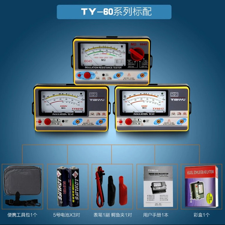 Tianyu insulation resistance tester TY6017 6018 6045 pointer type electronic Megohm meter 500V 1000V