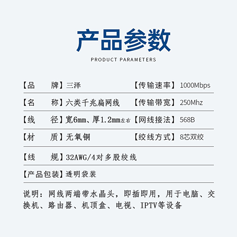 Sanze Six Gigabit Flat Network Cable CAT 6 General Computer Internet Pure Copper Twin Patch 1 2 2 5 m