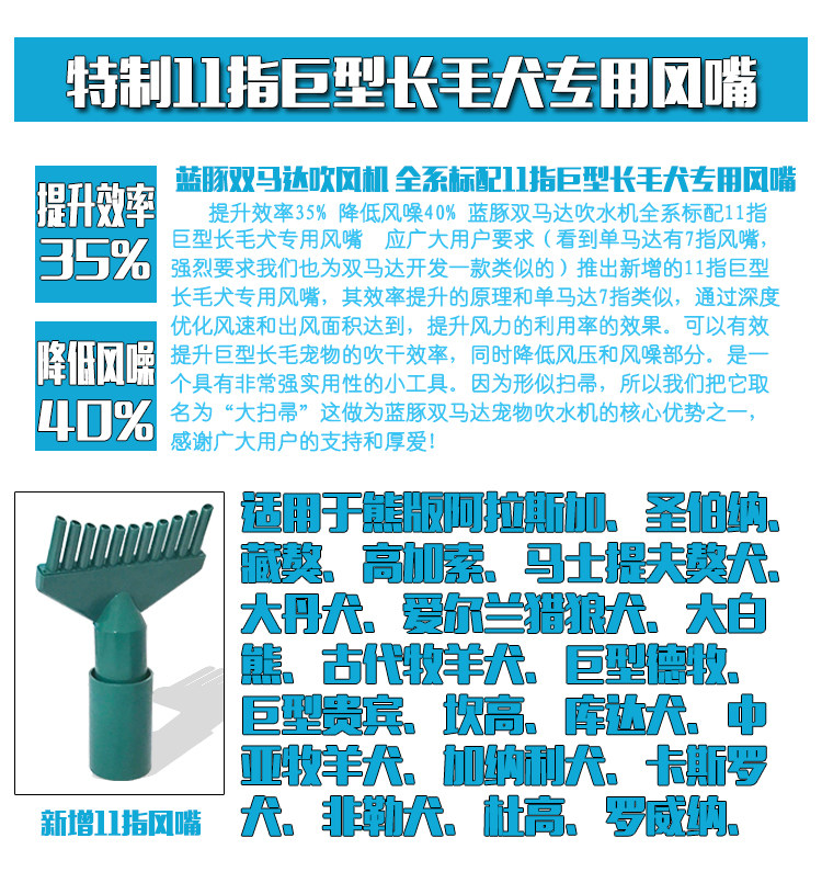 Blue dolphin active heating double horse Big Dog dog golden retriever pet special high power Double motor Blower