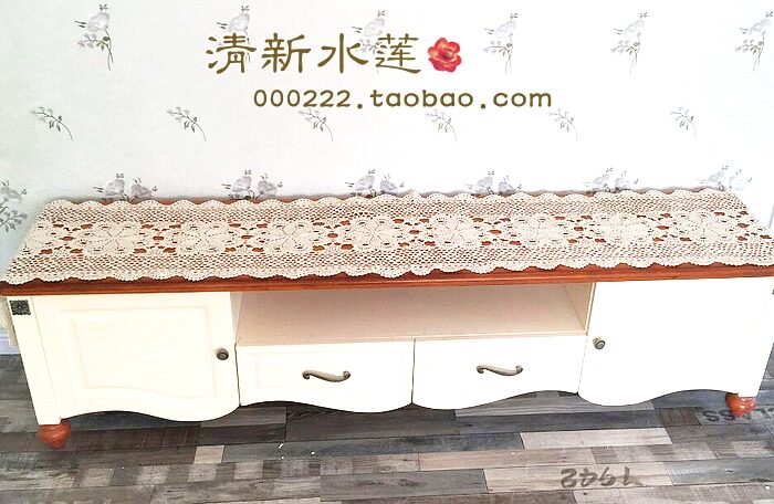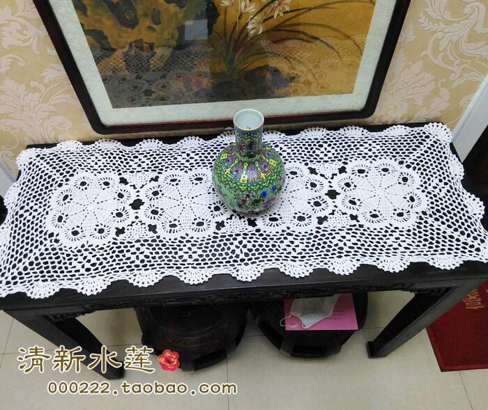 Fresh water lotus hand woven cotton flowers Chinese furniture decorative cover cloth towel TV cabinet tea table flag long Square