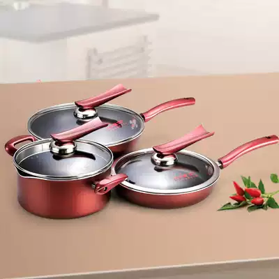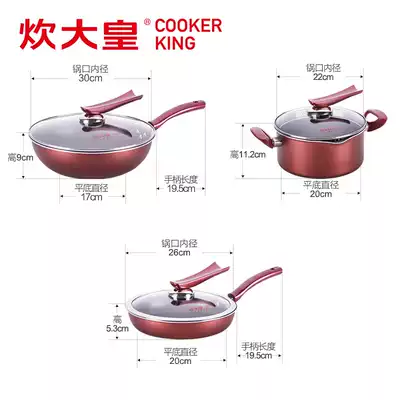 Great cooking Emperor non-stick pot pot household three-piece set of kitchenware frying pan wok wok induction cooker Universal