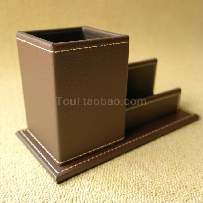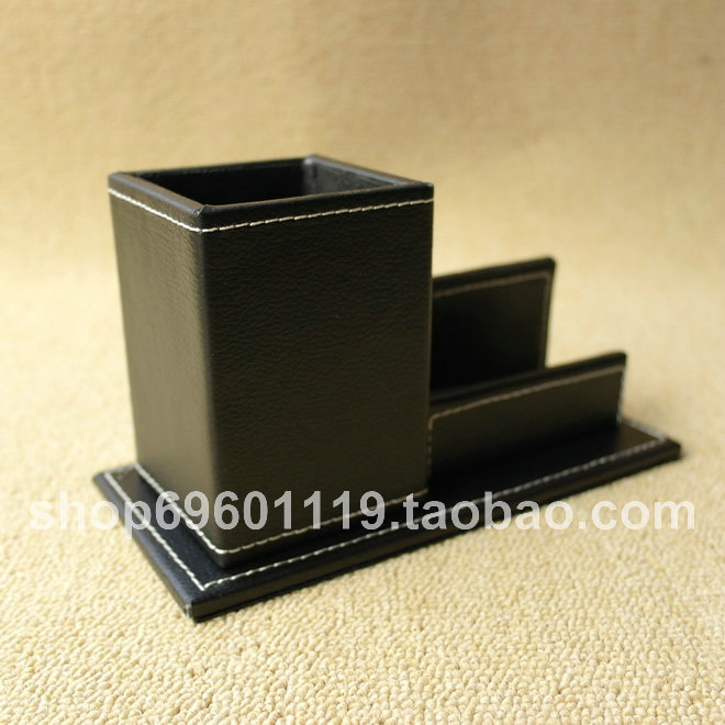 Imitation leather PU multifunction pen holder card holder leather wood pen holder card holder card holder creative office gift