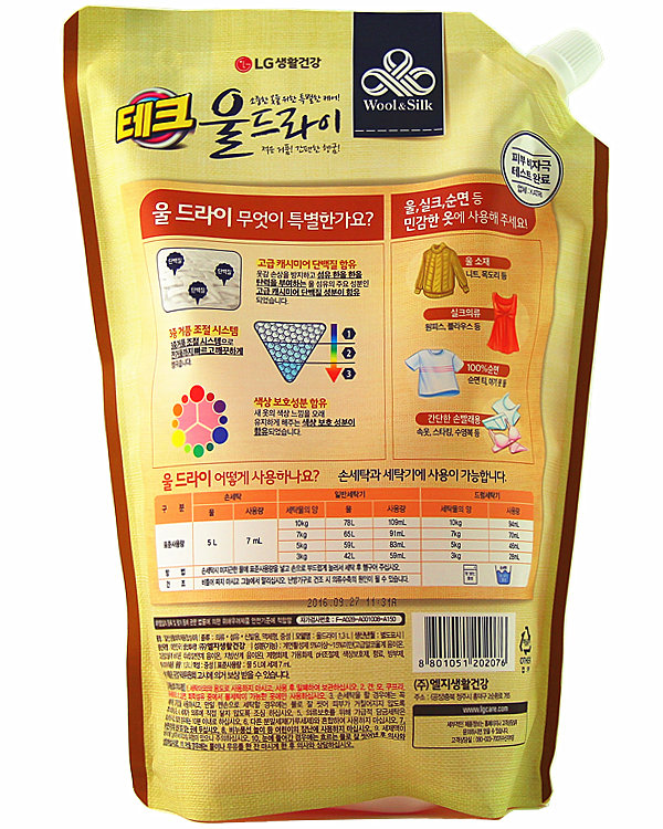 South Korea imported LG laundry liquid natural low foam neutral laundry liquid underwear sterilization refill 1300ml