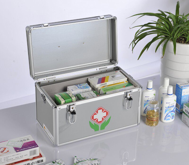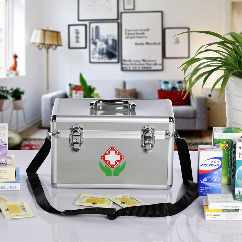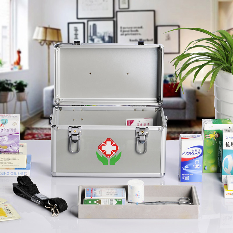 Large medium - sized sized portable aluminum alloy belt lock household multi - layer medical medicine box outpatient receives emergency drug box