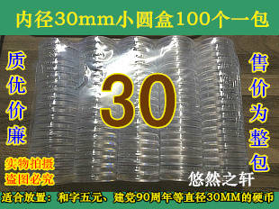 Plastic transparent small round case and character 5 yuan Sun Yat-sen commemorative coin collection coin packaging protection 30mm