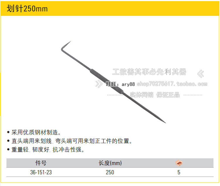 Stanley slitting needle 250mm pointed steel needle steel needle fitter marking tool 36-151-23