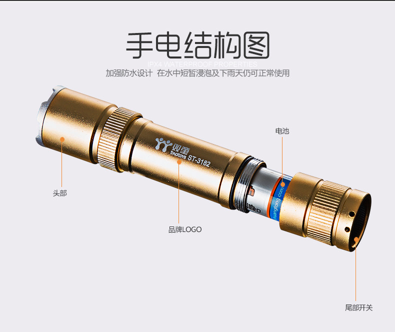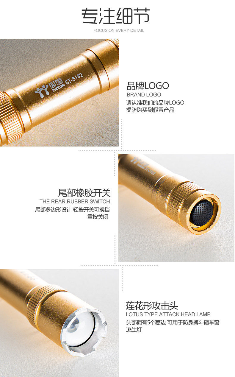 Dual Child Bright Light Flashlight ST-3182 Rechargeable Mini Zoom Super Bright LED Far Shot Outdoor Searchlight