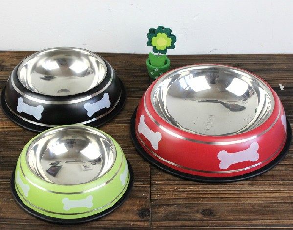 Color stainless steel non-slip dog bowl dog bowl dog food bowl dog rice bowl golden retriever rice bowl pet dog supplies