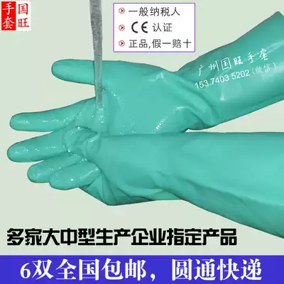 Guangzhou Guowang exports European CE industrial acid and alkali resistant rubber nitrile gloves