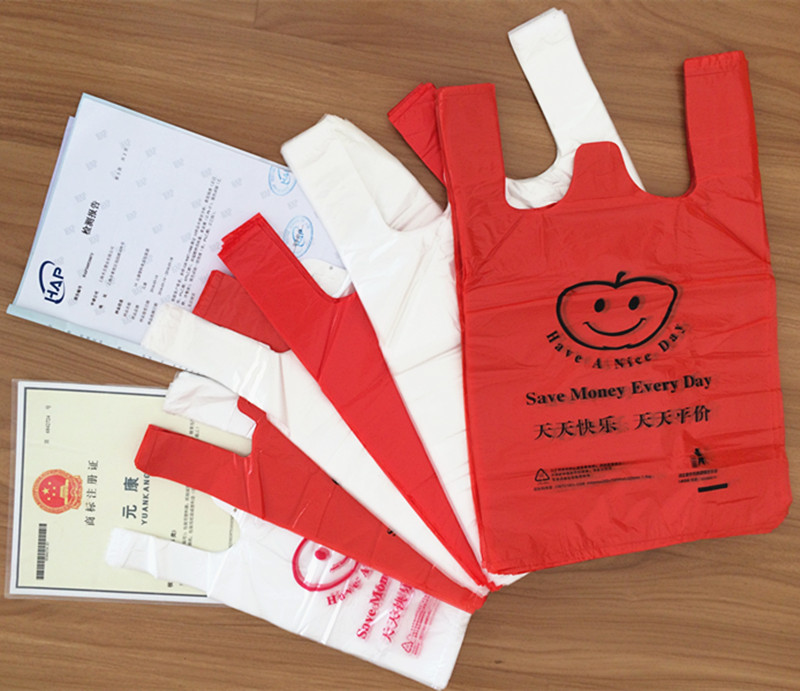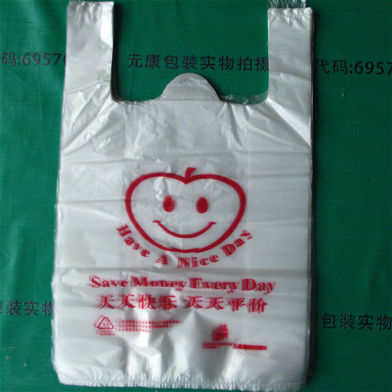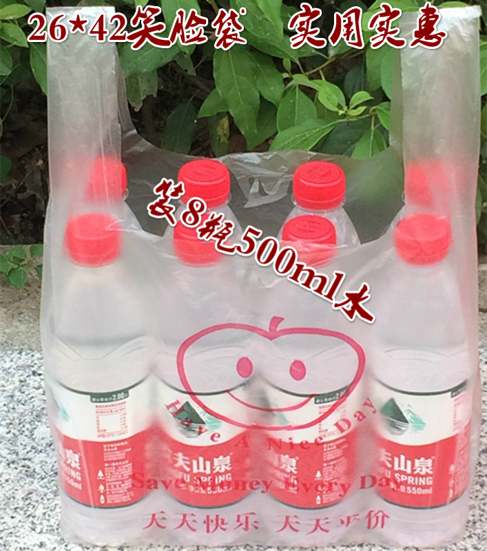 26*42 Supermarket shopping bag convenient bag transparent vest bag Smiley plastic bag custom logo horse clip bag plastic bag