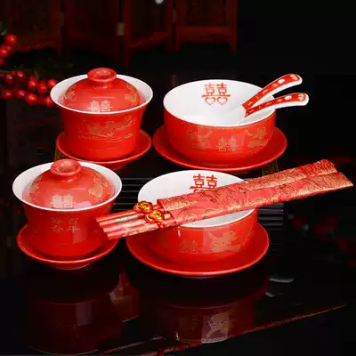 Tianyuan Wedding Ceramics Bowl Couple Cup Couple Happy Chopsticks Wedding Dragon Phoenix Sun Bowl Tea Cup Set