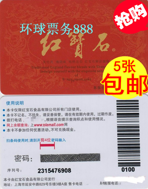 Ruby RMB100 IC Cash Stored-value Card Bread Coupon Coupon Coupon Coupon Pickup Card 3 sheets