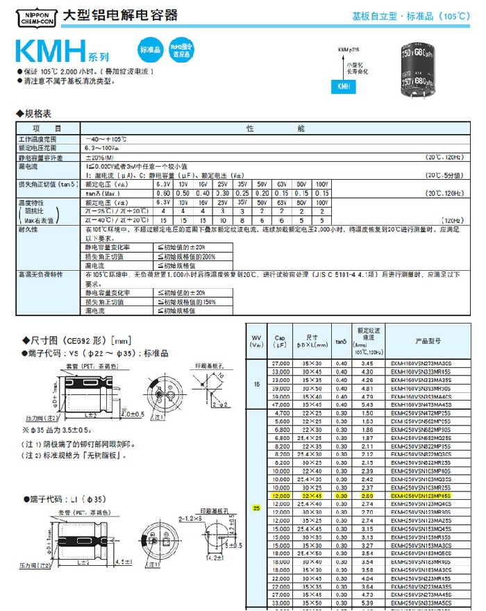Imported Japan 12000uF 25V Black Diamond KMH electrolytic capacitor NCC 105 degrees 22 × 45