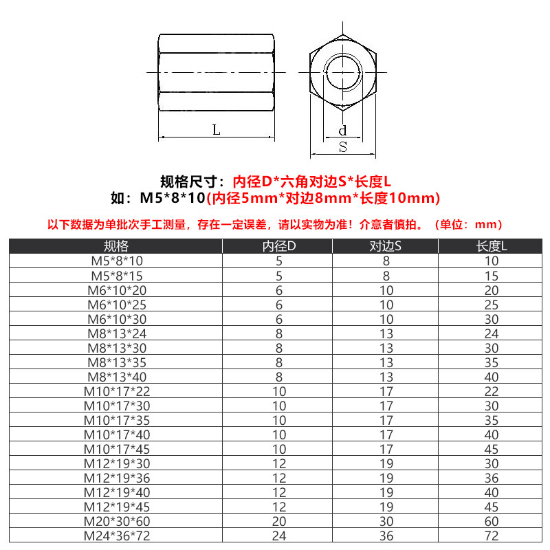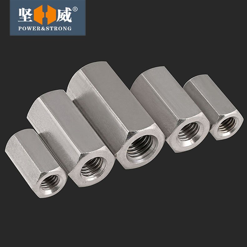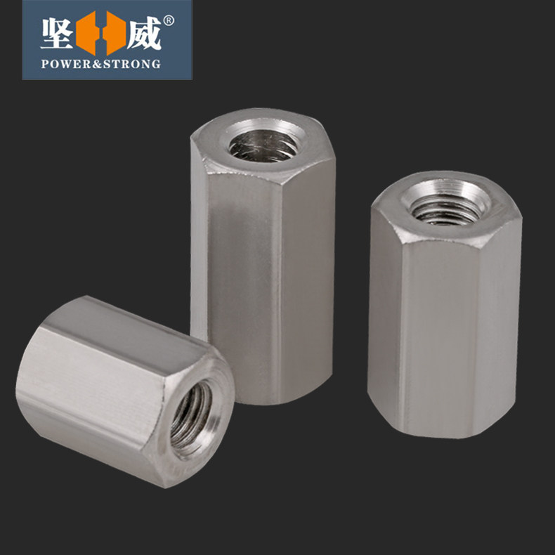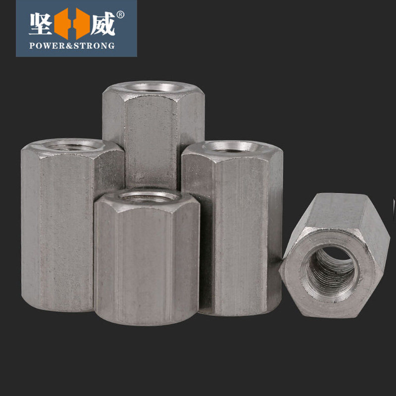 304 stainless steel hexagon extended hexagon nut screw connector female full tooth screw joint nut M5-M24