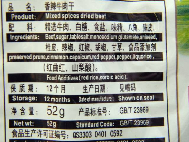 5 bags of 50g old chef spiced and spicy satay beef jerky
